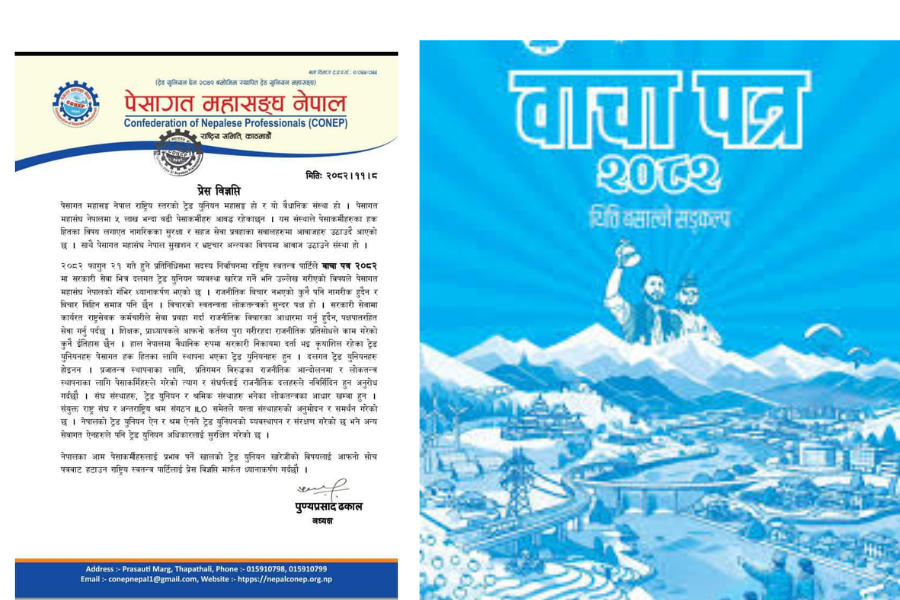 ट्रेड युनियन खारेजीको सोच वाचापत्र बाट हटाउन पेशागत महासंघको ध्यानाकर्षण