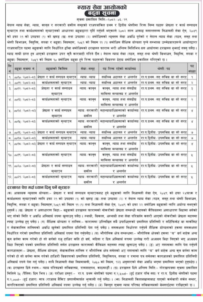 सूचना प्रकाशित भएको मितिले ३५ दिनभित्र बढुवाका लागि आवेदन दिन सूचनामा भनिएको छ । विस्तृत सूचना न्याय परिषद् सचिवालयको वेबसाइटमा उपलब्ध छ।