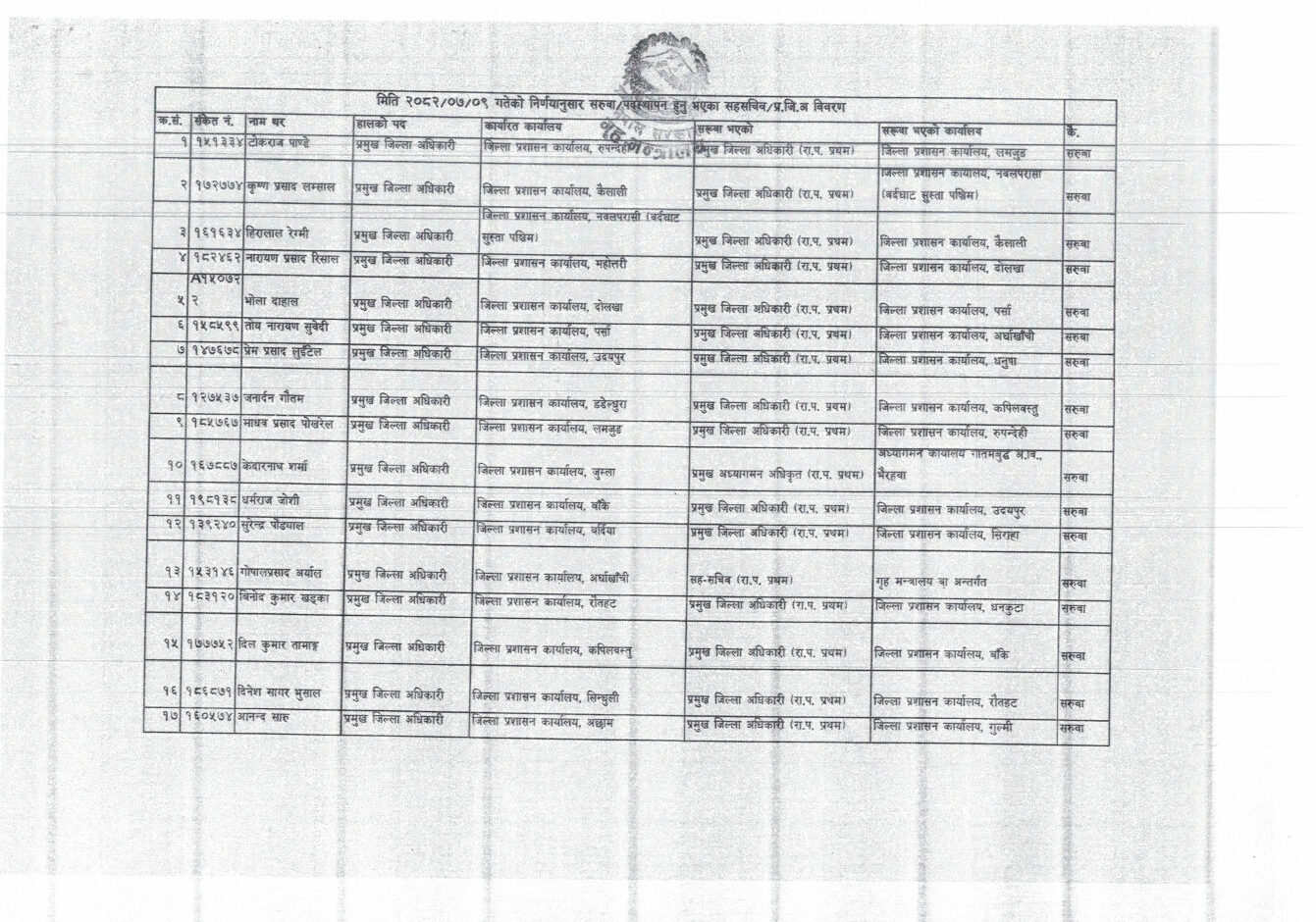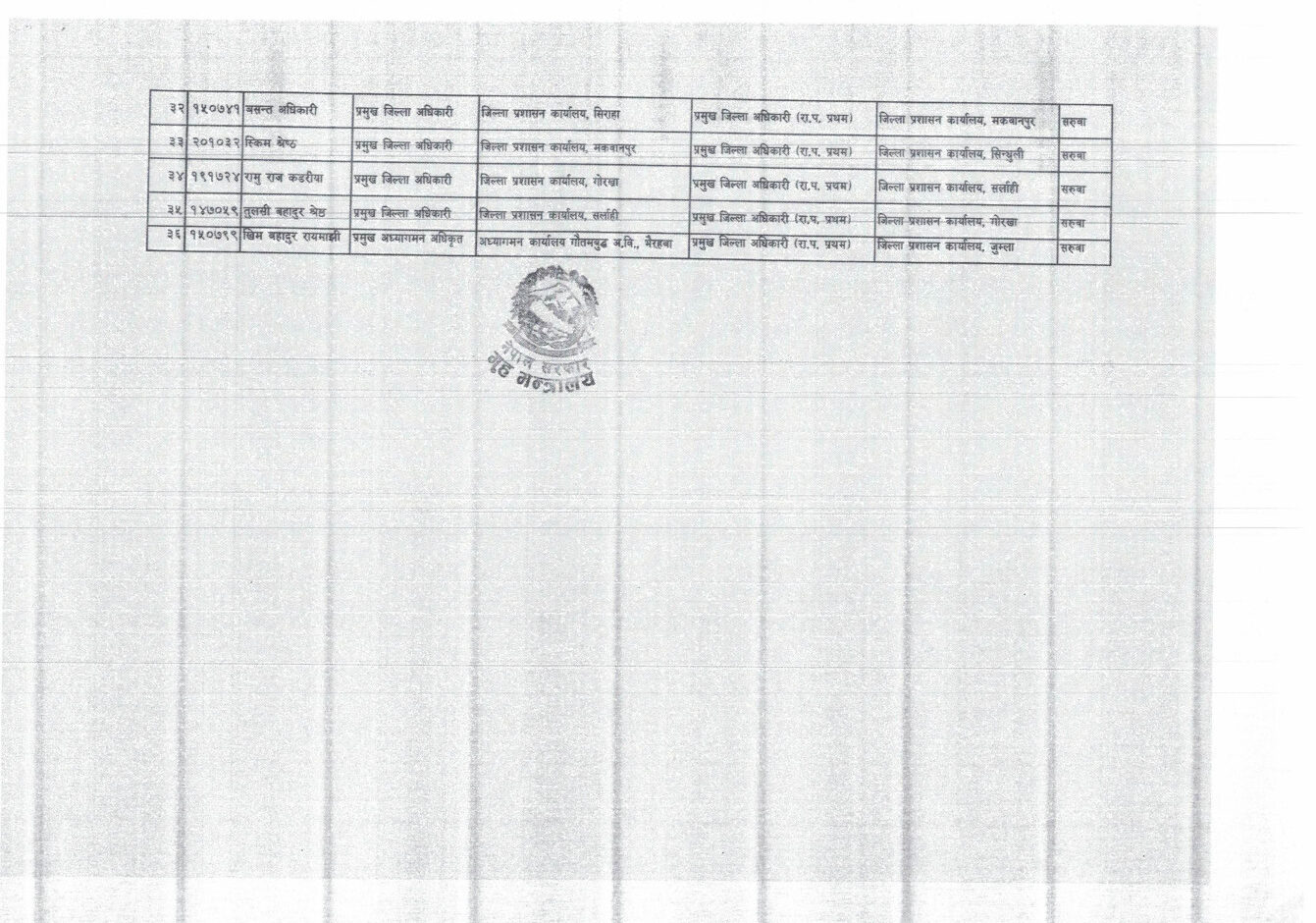 ललितपुर,भक्तपुरका सिडियोसहित ३६ सहसचिवको सरुवा