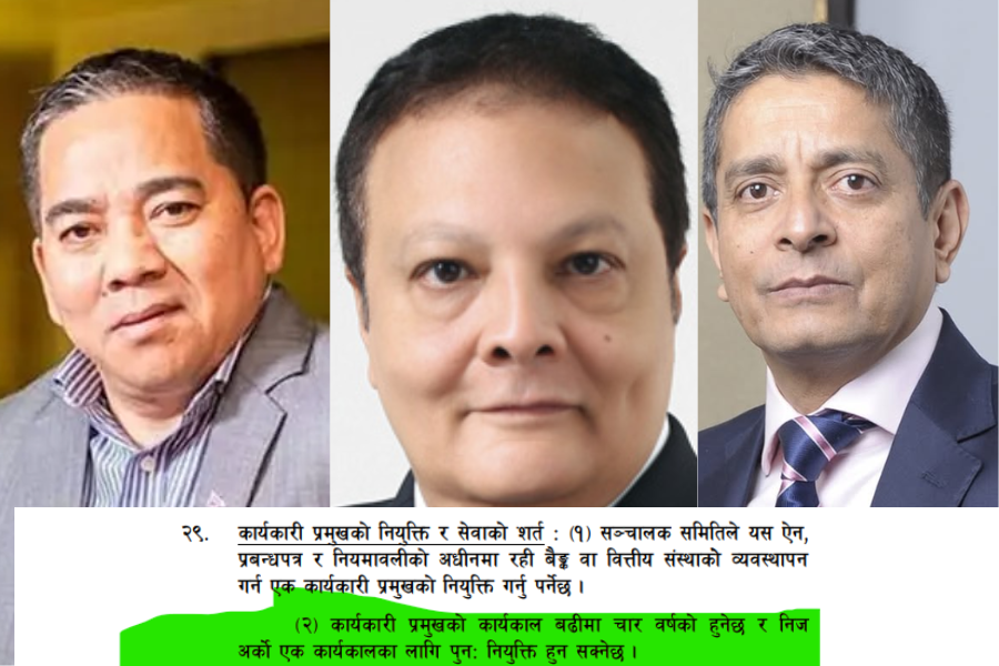 बैंक तथा वित्तीय संस्था ऐन, २०७३ (बाफिया)का प्रावधानको व्याख्या विपरित यी तीन वटा बैकहरु सञ्चालित छन् । बैंक व्यवस्थापनकै उच्च पद सिइओमा पुग्नेहरू एउटै बैंकमा लगातार दुई कार्यकाल (८ वर्ष) भन्दा बढी बस्न पाउदैनन् । लगातार रुपमा एउटै बैंकमा दुई कार्यकाल काम गरिसकेपछि केही सिइओहरु अर्काे बैंकमा पुगेका छन् । केही त यही प्रावधानका कारण डेपुटी सिइओ बनेर समेत अर्काे बैंकमा पुगेका उदाहरण पनि छ बैंक क्षेत्रमा ।