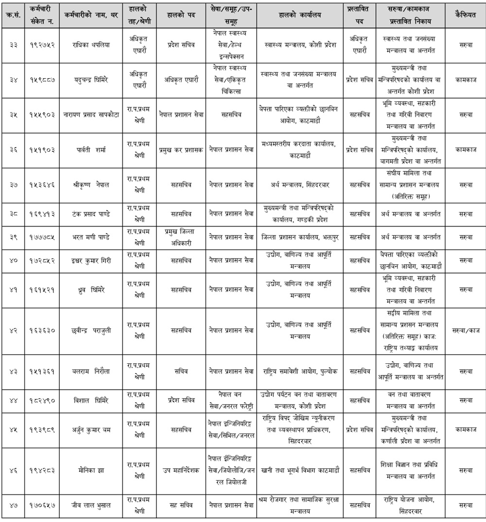 ७२ सहसचिव सरुवामा पार्वती शर्मा बागमती प्रदेश पठाइएकी थिइन्। तर उनले सरुवा मानिनन् — बरु मन्त्रालयमै उच्च प्रभाव प्रयोग गरी पद र शक्ति जोगाइरहेकी छन्। यही व्यवहारकै झल्को मुगुम कार्मारोङ घटनामा देखिएको गाउँपालिका स्रोतहरूको टिप्पणी छ।