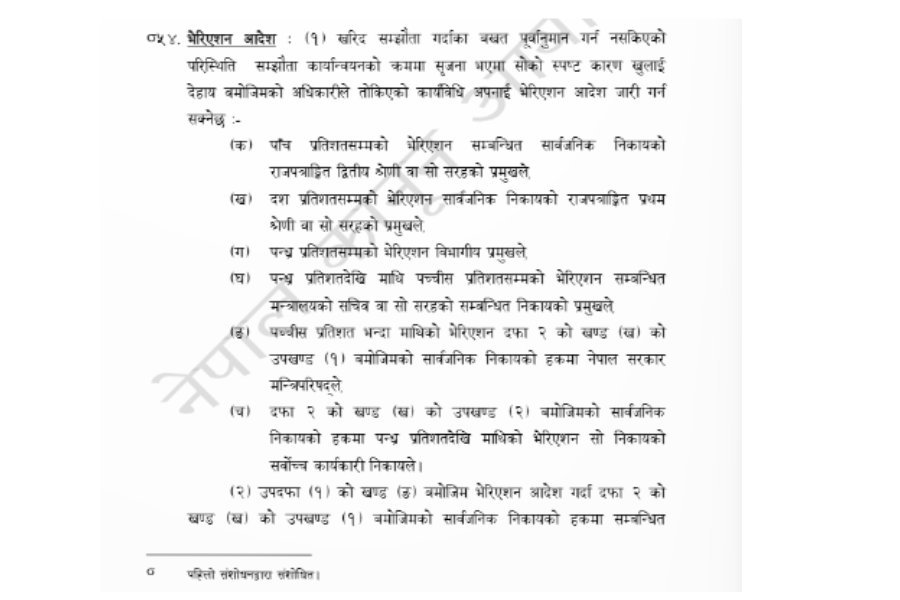 सार्वजनिक खरिद ऐन २०६३ को दफा ५४ को उपदफा १ मा भेरिएसन आदेश जारी गर्ने र स्वीकृत गर्ने सम्बन्धमा खरिद व्यवस्थामा अन्यथा व्यवस्था भएकोमा बाहेक खरिद सम्झौता गर्दाका बखत पूर्वानुमान गर्न नसकिएको परिस्थिति सो सम्झौता कार्यान्वयनका क्रममा सिर्जना भएमा सोको स्पष्ट कारण खुलाइ अधिकारप्राप्त अधिकारीले १५ प्रतिशतसम्मको भेरिएसनको आदेश जारी गर्न सक्ने व्यवस्था छ । तर उनी कार्यालय प्रमुख हुँदा ४ अर्ब ५३ करोड ४६ लाख रुपैयाँ सम्झौता भएको आयोजनाको भेरियसन गरी ६ अर्ब ५९ करोड ८७ लाख रुपैयाँ पुर्याएर भुक्तानी भएको बिषयमा गडबडी भएको जानकारहरुले बताएका छन् । त्यही कानुनी लुपहोलको फाइदा उठाएर ठेकेदारहरुलाई पोस्ने काम भएको र राज्यलाई अर्बाै नोक्सानी पार्ने काम सहसचिव बोहराबाट भएको स्रोतले दावी गरेको छ ।
