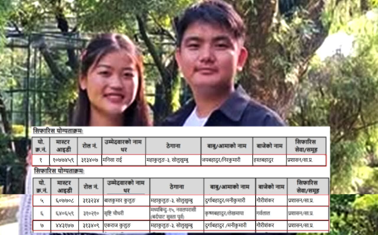 एउटै घरका श्रीमान–श्रीमती र देवर एकैपटक शाखा अधिकृतमा सिफारिस