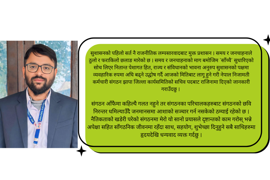 रास्वपाको जितसँगै कर्मचारी संगठनमा हलचल : संगठनका जिल्ला सचिव मैनालीको राजीनामा